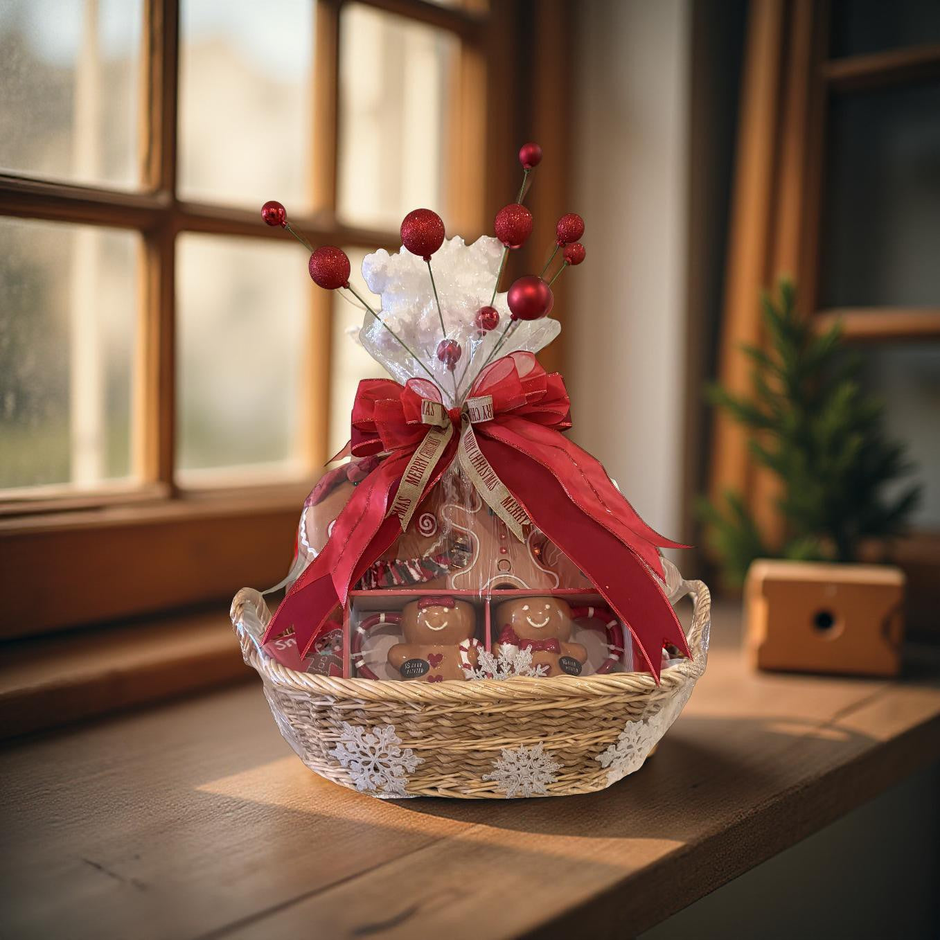 Step into the warmth of the season with this Gingerbread Lane Premier Basket, a delightful mix of festive comfort and holiday sweetness.
